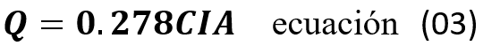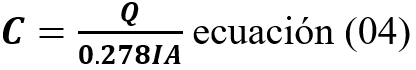 De la ecuación (03), se despeja el coeficiente de escorrentía y se obtiene la siguiente ecuación: