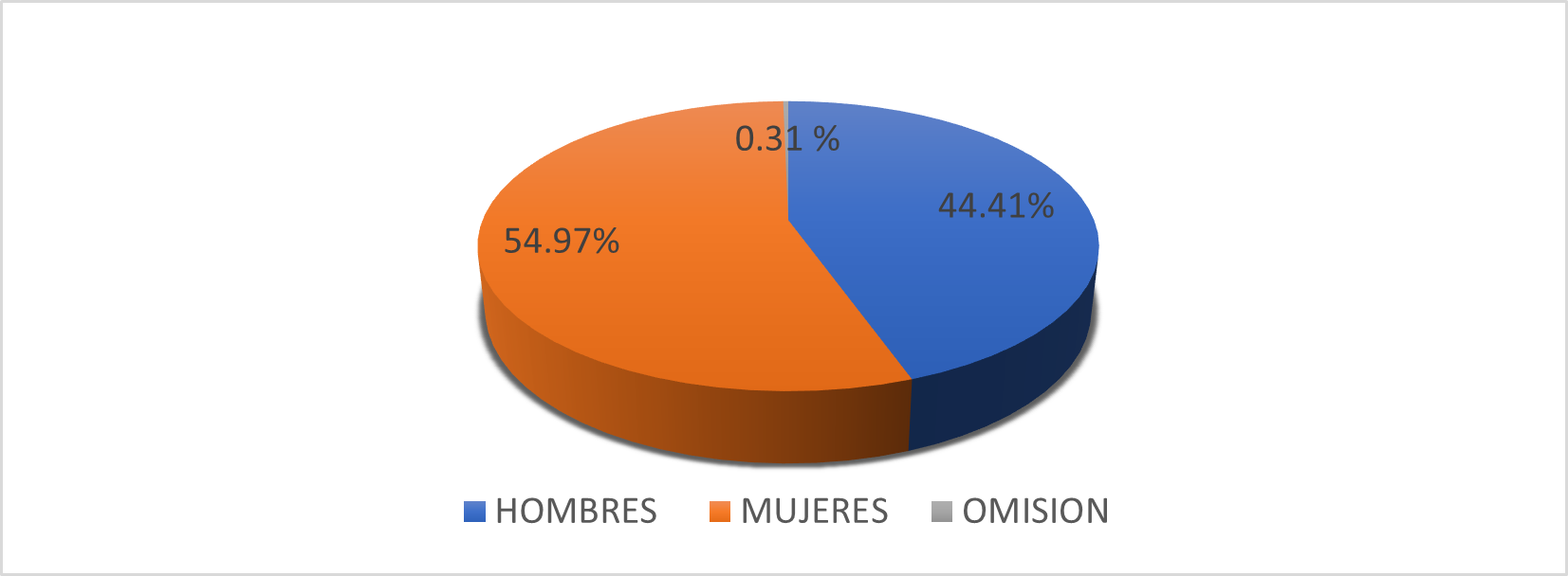 Las edades de los participantes en la muestra (n = 325) se agruparon en los siguientes rangos: 16 a 20 años (9.2%), 21 a 30 años (31.7%), 31 a 50 años (36.6%) y mayores de 50 años (22.5%). El grupo predominante en el estudio fue el de 31 a 50 años, seguido por el de 21 a 30 años. El 22.5% de los participantes tenían más de 50 años, siendo en su mayoría pensionados, quienes presentan una mayor demanda de asistencia médica. Estos resultados son similares a los reportados en las publicaciones revisadas, donde el sexo femenino fue el más frecuente en la muestra, y el grupo etario más común fue el de 50 a 59 años (Sequeira, 2019).