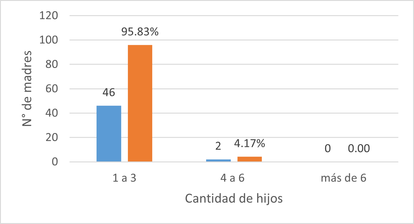 En el grupo de mujeres encuestadas el 100% de las mismas no reportó hijos con discapacidad, el hecho de que ninguna reportara hijos con discapacidades también es significativo, ya que, aunque estas mujeres enfrentan retos importantes, no tienen que enfrentar desafíos adicionales asociados al cuido de niños con necesidades especiales que conlleva una mayor dedicación de tiempo, atención especializada y recursos económicos.