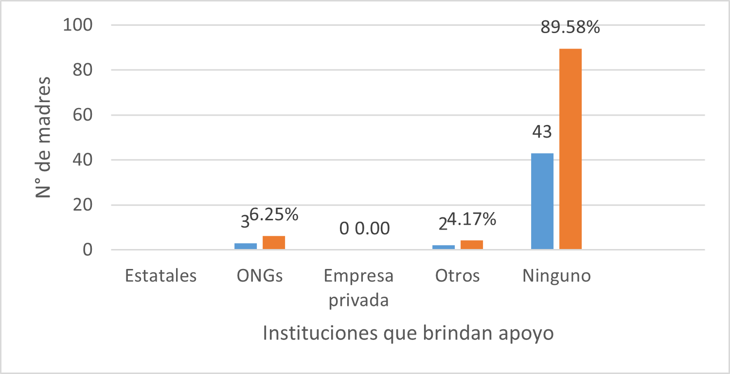 En México, Huerta Mata (2019), evidenció que las madres solteras universitarias enfrentan una escasa atención institucional, expresada en la ausencia de servicios como guarderías, pese a la disponibilidad de fondos. En estos casos, el respaldo proviene principalmente de la familia de origen, aunque ello refuerza una identidad materna centrada en la provisión económica, lo cual incrementa la carga sobre las estudiantes madres.