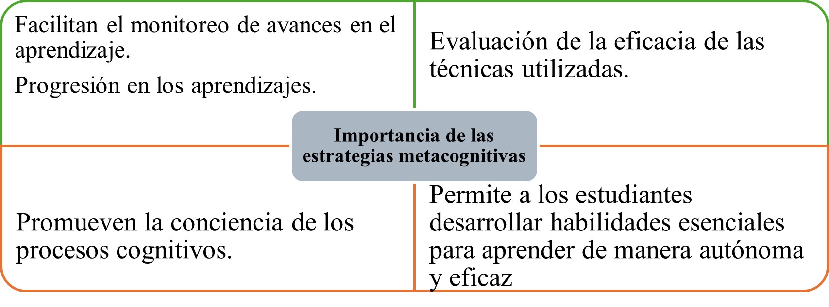 Nota: la figura hace referencia a la relevancia de implementar estrategias metacognitivas en los procesos de aprendizaje. Fuente elaboración propia adaptado de Salazar y Cáceres (2022).