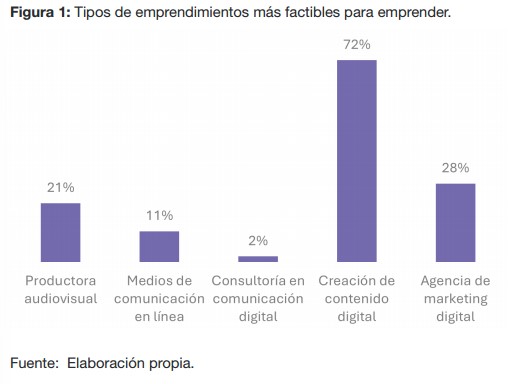 Con esta investigación se desataca el interés que tienen los estudiantes de comunicación por emprender de forma digital desde su disciplina, siendo una oportunidad factible a corto plazo y a su vez, como una alternativa laboral viable y sólida.