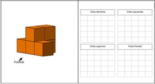 En la tercera tarea se planteó el paso de representaciones de 2D a 3D, dibujando el cuerpo geométrico que se forma a partir de sus vistas, viendo el material impreso y el entorno virtual (según Figura 7).