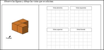 La tarea 2 o Tarea Instrumentada (40 minutos) se realizó en parejas, enfocada en identificar vistas (indicar con flechas sobre la figura, dibujar vistas superior, frontal e izquierda) de dos figuras policúbicas antes y durante el uso de RV (ver ejemplo en Figura 6).