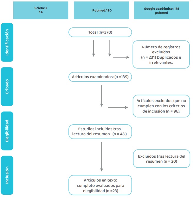 Para garantizar rigurosidad y transparencia en el proceso de revisión, se tomó como referencia la guía PRISMA (Preferred Reporting Items for Systematic Reviews and Meta-Analyses)10, la cual proporciona un marco estructurado para la identificación, selección y análisis de estudios científicos.