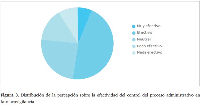 En relación con la percepción de los encuestados sobre la efectividad del control del proceso administrativo en las actividades de farmacovigilancia, los resultados fueron los siguientes: