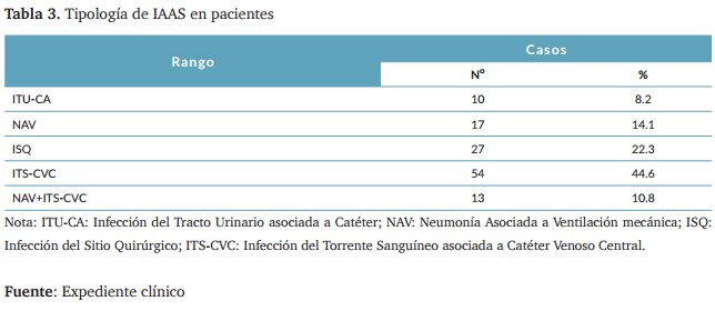 En cuanto a la tipología de IAAS, predominó la infección del torrente sanguíneo asociada a catéter venoso central (ITS-CVC), seguida de la infección del sitio quirúrgico (ISQ). Los agentes etiológicos más frecuentes fueron Staphylococcus aureus y Escherichia coli, con una baja tasa de resistencia antimicrobiana reportada (4.1%). Los hallazgos permiten aceptar la hipótesis planteada, confirmando la existencia de factores sociodemográficos, clínicos y microbiológicos significativamente asociados al desarrollo de IAAS en pacientes hospitalizados en UCI.