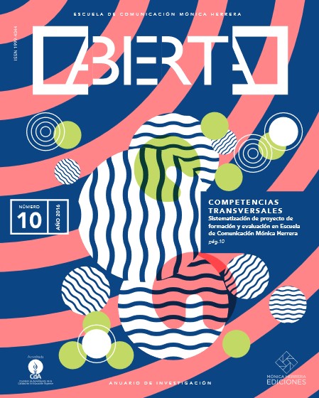 Núm. 8 (2014)Abierta es una revista que recopila lo trabajos académicos más relevantes realizados durante el transcurso del año en la Escuela de Comunicación Mónica Herrera. En ella se presentan temas de interés institucional, abordados desde las perspectivas de la comunicación, el marketing y el diseño estratégico, involucrando opiniones de diversos actores. A continuación se presenta la edición número ocho de esta revista.