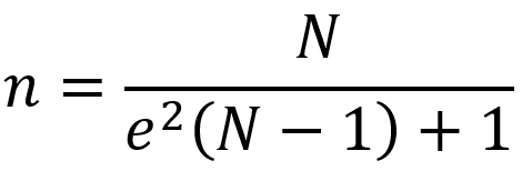 Para determinar la idoneidad del tamaño de la muestra en un estudio, es necesario considerar no solo la varianza de la población (diversidad poblacional), sino también otros dos factores importantes: el nivel de confianza y el error máximo permisible en las estimaciones (error de muestreo). Como principio general, se puede afirmar que cuanto más homogénea sea la población, menor será el tamaño de la muestra requerido. Una vez determinados los parámetros poblacionales, el tamaño de la muestra se calcula utilizando diversos criterios estadísticos. Uno de ellos es la denominada fórmula "n" (tamaño de la muestra). Por lo tanto, para poblaciones infinitas, el cálculo de la muestra se puede realizar mediante la siguiente ecuación: