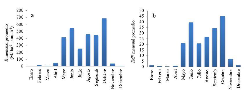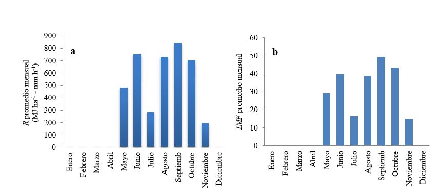 Según el índice modificado de Fournier (IMF) e índice de erosividad de la lluvia (Rmes) a escala mensual, indica que pueden ser usado en sitios cercanos a las estaciones estudiadas que cuentan con datos mensuales de precipitación.