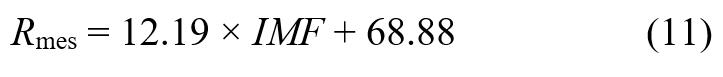 Se procedió al análisis de correlación entre las variables R mensual e IMF mensual, adoptándose una correlación lineal como la de mejor ajuste. Se evaluó la bondad del ajuste obtenido. Los parámetros de evaluación utilizados fueron: coeficiente de determinación lineal r2 (6), porcentaje de sesgo PBIAS (7) y raíz del error cuadrático medio RMSE (8). El coeficiente r2 mide la asociación lineal entre dos variables, es adimensional y varía de cero a uno, mientras más se acerca a uno, hay mayor asociación entre las variables. El porcentaje de sesgo PBIAS evalúa la tendencia promedio entre el dato observado y el estimado, deberá ser ≤ ±25% y r2 ≥ 0.6 (Moriasi et al., 2007). El RMSE permite cuantificar la magnitud de la desviación de los valores estimados respecto a los observados, o sea, la exactitud. Las ecuaciones (6), (7) y (8) son las utilizadas para el cálculo de r2, PBIAS y RMSE.