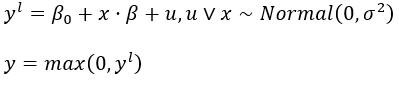The latent variable y1is expected to satisfy the classical linear model assumptions; it has a normal, homoskedastic distribution with a linear conditional mean. Equation (3) implies that the observed variable, y, equals y1if y1 >= 0, but y = 0 when y1< 0 . Because y1 is normally distributed, y has a continuous distribution over strictly positive value (Wooldridge, 2012). The Tobit model is a particular case of a broader family of censored regression models, as the dependent variable may as well be right-censored. The family of censored models are typically estimated by means of the Maximum Likelihood approach.