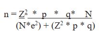 n = Tamaño de la muestra resultante, Z = Nivel de confianza. En este estudio el nivel de confianza es igual a 90%, el valor de Z correspondiente = 2.74, p y q = probabilidades complementarias e igual a 0.5, N = 1 470 corresponde al universo, e = Error de estimación aceptable para encuestas 10%.