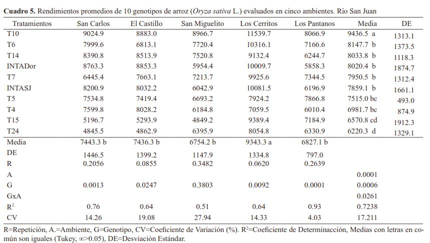 Evaluación de líneas de arroz (Oryza sativa L.) y estabilidad fenotípica en cinco localidades de Río San Juan, NicaraguaEvaluation of rice lines (Oryza sativa L.) and phenotypic stability in five locations of Río San Juan, Nicaragua |