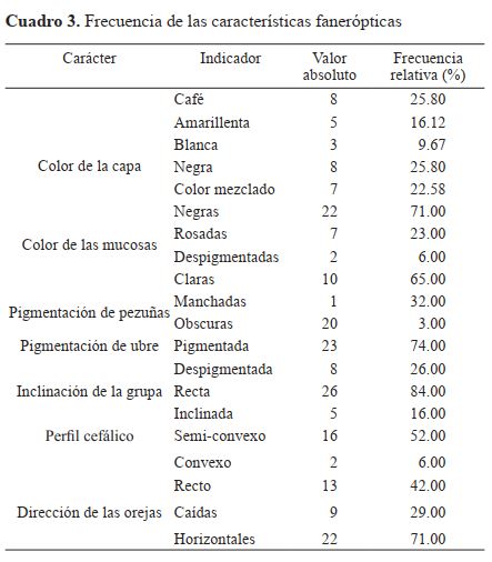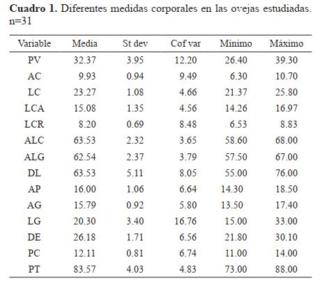 valoración faneróptica y la determinación de variables morfométricas, sus interrelaciones y componentes principales (ACP) de la explicación de la varianza. Se evaluaron un total de 31 hembras por