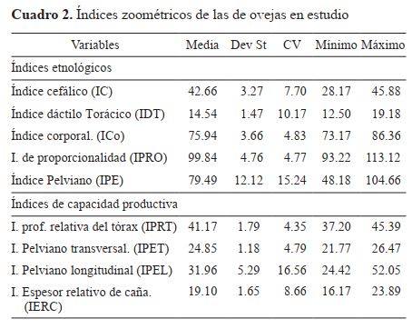 caracteres fanerópticos, y se estimaron nueve índices zoométricos,