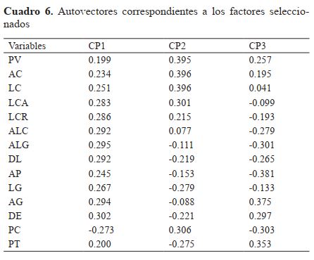 (ACP) of the variance explanation. Thirty one females were evaluated by random sampling, belonging to 100 animals herd, from the
