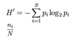 Formula que se utiliza para el cálculo de índice de diversidad de Shannon-Weaver.