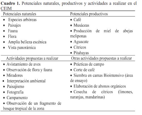 ecoturístico sobre la base de los potenciales naturales y productivos