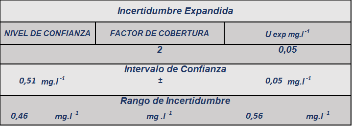 Nota: Para estimar la incertidumbre del método se tomó como muestra incógnita el valor de concentración de muestra control de 0,50mg.l-1.