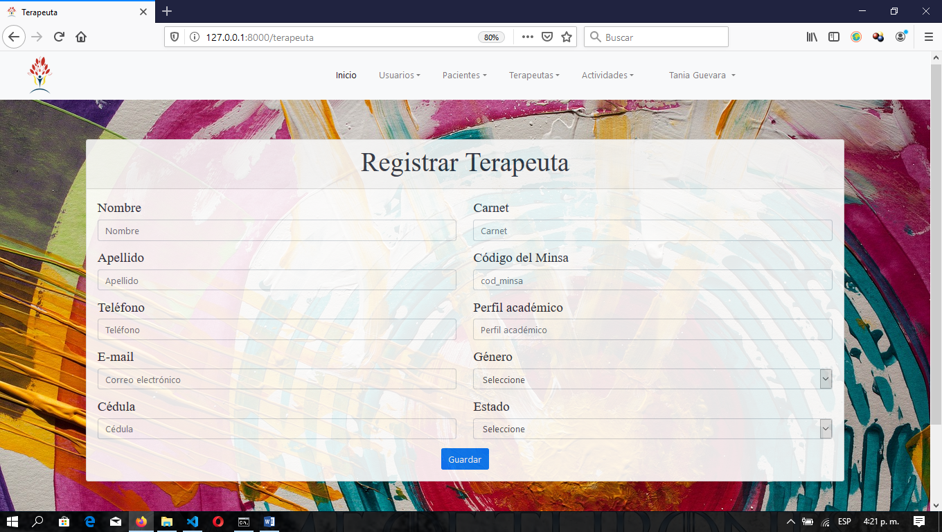 Ilustración 5. Formulario Registrar Terapeuta.
