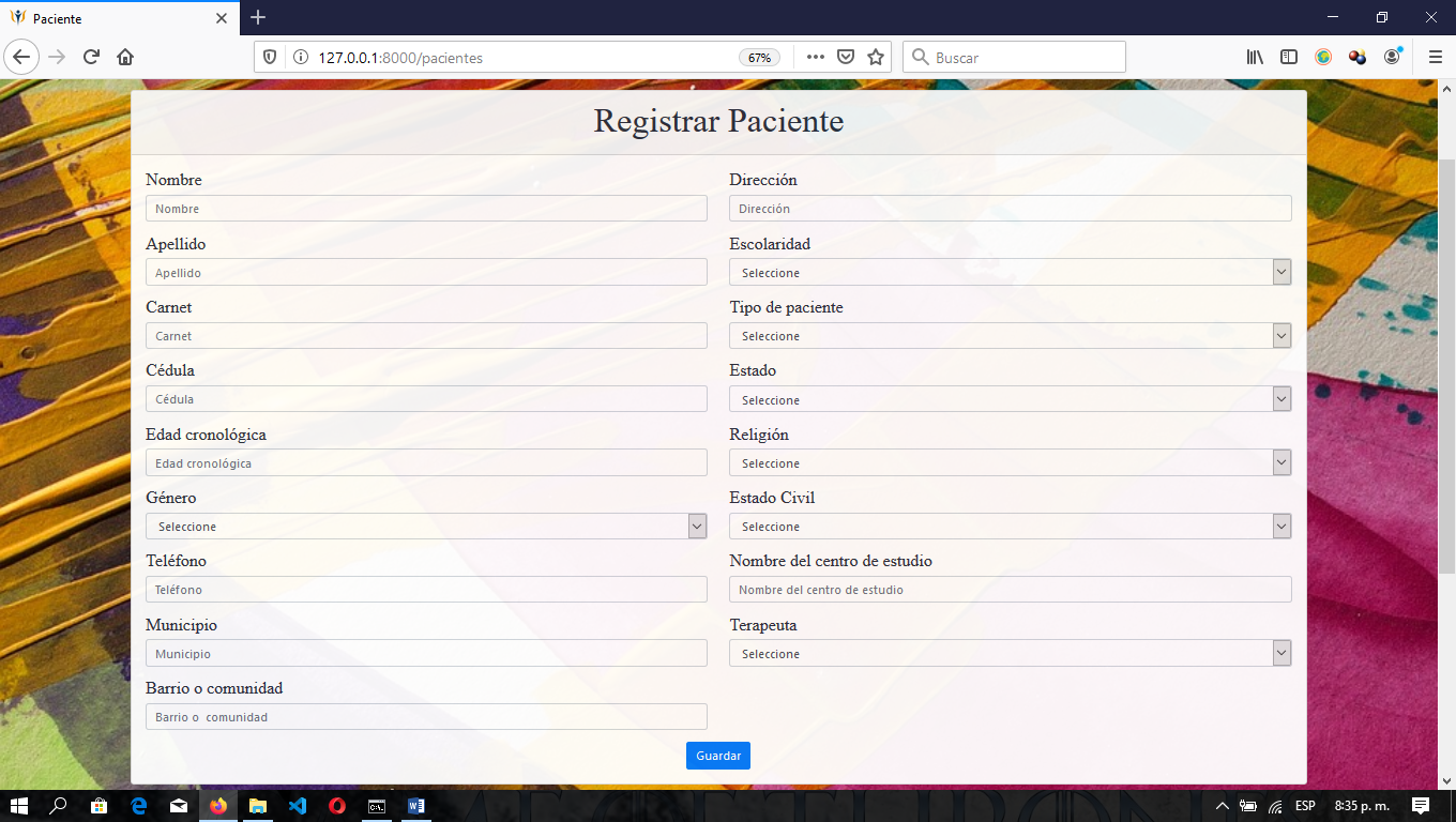 Ilustración 6. Formulario Registrar Paciente.