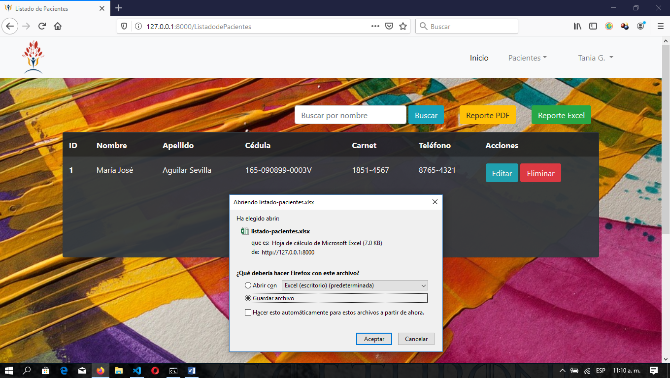 Ilustración 8. Reporte Excel de pacientes.
