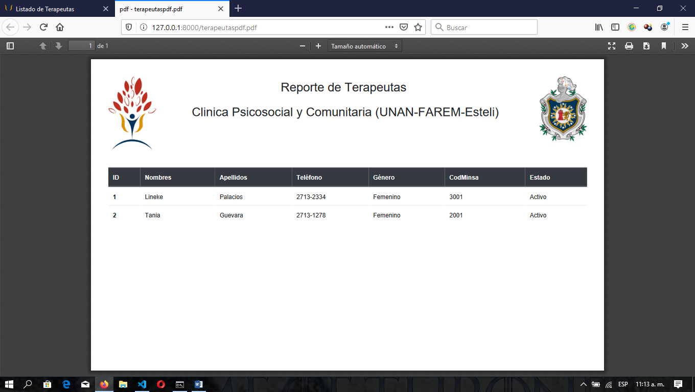 Ilustración 9. Reporte PDF de Terapeutas.