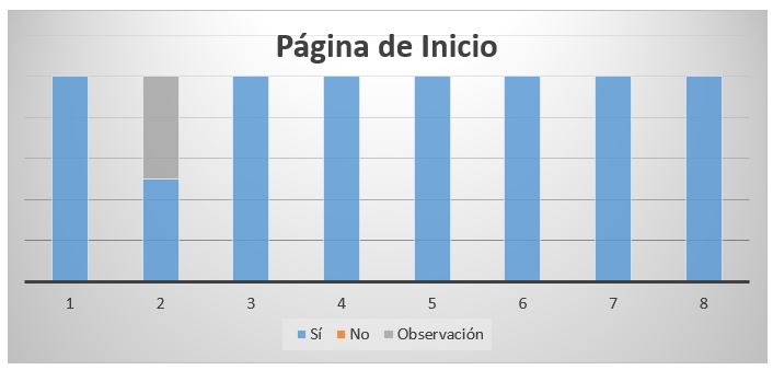 Todos los ítems, obtuvieron la mayor parte respuestas positivas, y algunas observaciones como la incorporación del logo en el Landing de bienvenida y Landing de inicio como se observa en el gráfico N° 1.Gráfico N° 1