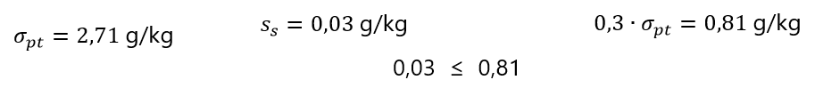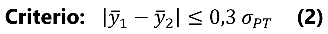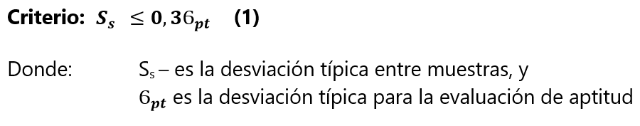 El criterio de evaluación para establecer la estabilidad del lote de ítems preparados para ser entregados a los participantes, se presenta en la siguiente ecuación (2):