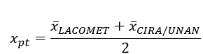 Xpt es el valor asignado al ítem de ensayo de calcio y de magnesio, a partir de los promedios obtenidos por el LACOMET y el CIRA/UNAN