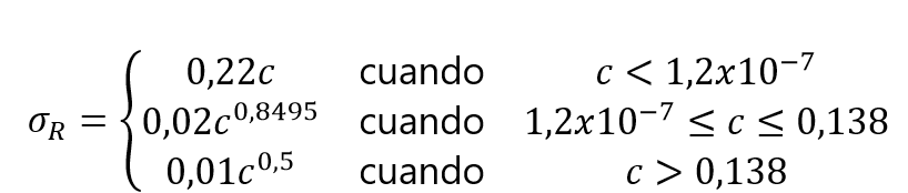 Para todos los demás ítems de ensayos Dureza total, Dureza cálcica, Calcio y Magnesio, su desviación típica para la evaluación de aptitud, se calculó utilizando un modelo empírico de la curva de Horwitz (ecuación 7), un modelo general para estimar la reproducibilidad de métodos analíticos en químicos [1].