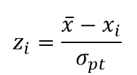Para la evaluación del desempeño de los laboratorios participantes se utilizó el z-puntaje (z-score), de acuerdo con la norma INTE 13528:2016 y la norma ISO/IEC 17043:2011. El z-puntaje permite la evaluación del sesgo reportado por el participante con respecto al valor de referencia asignado para el ítem de ensayo utilizado, considerando la desviación estándar esperada para el ensayo de aptitud. Puede referenciarse la ecuación (8) para establecer el z-puntaje para cada participante para cada variable evaluada.