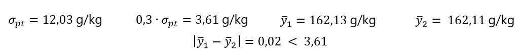 El criterio de evaluación para establecer si el lote es homogeneo se presenta en la siguiente ecuación (1):