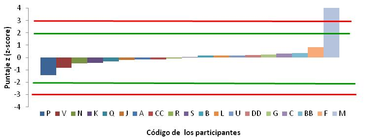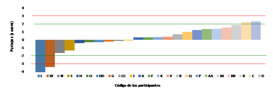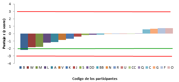 La Representación gráfica del z-puntaje en relación a la conductividad eléctrica obtenido por los participantes con sus respectivos códigos se presenta en la Figura 1.