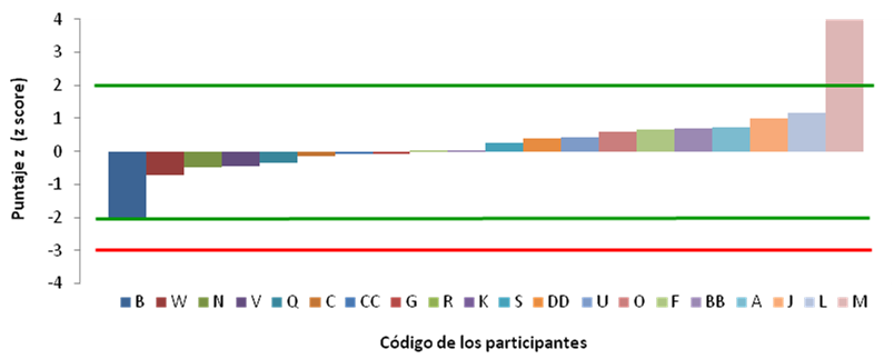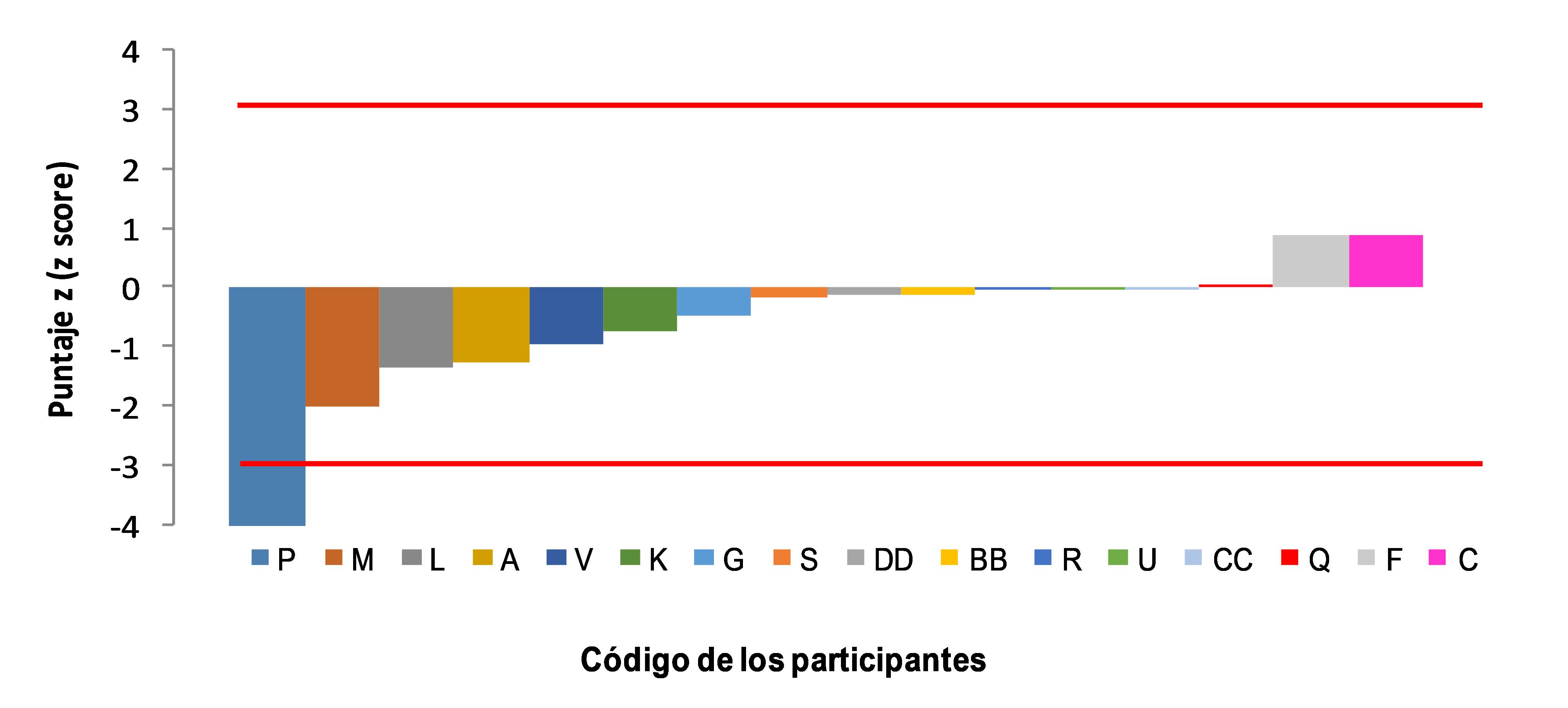 Palabras clave: comparación interlaboratorio; sesgo; desempeño; z-puntaje; análisis.