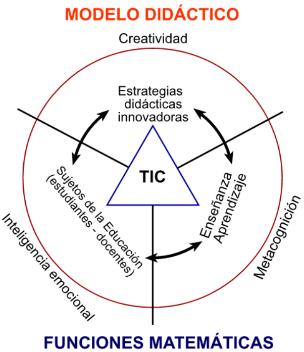 Metacognición. La metacognición permite a las personas reflexionar sobre su propio conocimiento, sobre su propio aprender. En el aprendizaje de las funciones matemáticas, este reflexionar es clave, para entender, asimilar, y aplicar los conocimientos adquiridos a situaciones similares o bien a otras áreas del conocimiento, de tal forma que el estudiante active su capacidad mental, que ejercite su creatividad, reflexionando sobre su propio proceso de pensamiento con el objetivo de mejorarlo de una forma consciente, “para ello es necesario proyectar técnicas para pensar [ … ] la enseñanza de habilidades metacognitivas desarrolladas a través de herramientas virtuales, ayuda a los estudiantes en su proceso de aprendizaje de una manera importante” (Jaramillo y Simbaña, 2014, p. 300). En este modelo es de vital importancia la incorporación de la metacognición acompañada de las TIC.