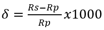 Donde: δ: desviación isotópica en ‰, s: muestra, p: referencia internacional, R: relación isotópica.