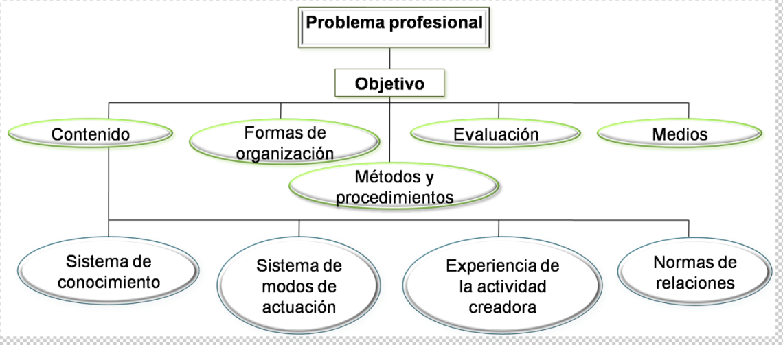 Es el primer componente del proceso docente-educativo. Se considera la situación que presenta un objeto y que genera en alguien una necesidad. Es decir, es la escasez de aprendizaje del sujeto en relación con el contexto social.