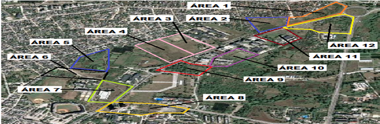 Figura 1.1 Áreas del polígono patrón de la universidad de Holguín.