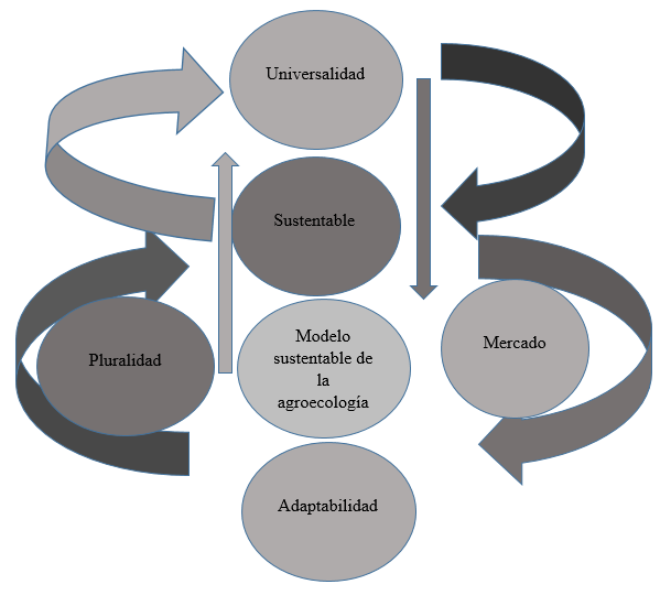 The purpose of this article is to deepen in the different theoretical approaches for the sustainability of agricultural production system excluded from agroecology, the hypothesis is based on the assumption that the quantities theoretically mentioned in this science are incomplete to express the scope and support of modern agricultural productivity and above all to achieve food security, the philosophical and theoretical conception to argue for an extension of the dimension and their applicability originates in authors who are expert in economics, ecological, and agronomic science, the article suggest to extend more the measurable scope of this subject, that is why sustainability, adaptive, plurality, market and universality are proposed. The measurement of these new facets for the integrality of this discipline, taking an approach of the universalization, application and understanding of it because the association of these principles is what will make the discipline a credible and practical science.