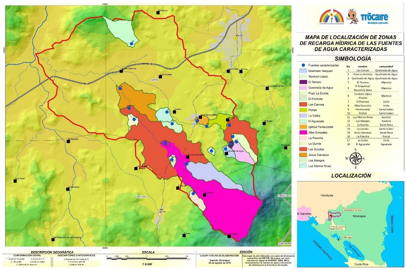 Fig. 1. Mapa de localización de las zonas de recarga hídrica de las fuentes de agua