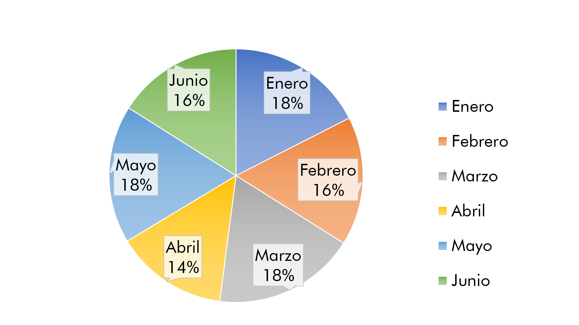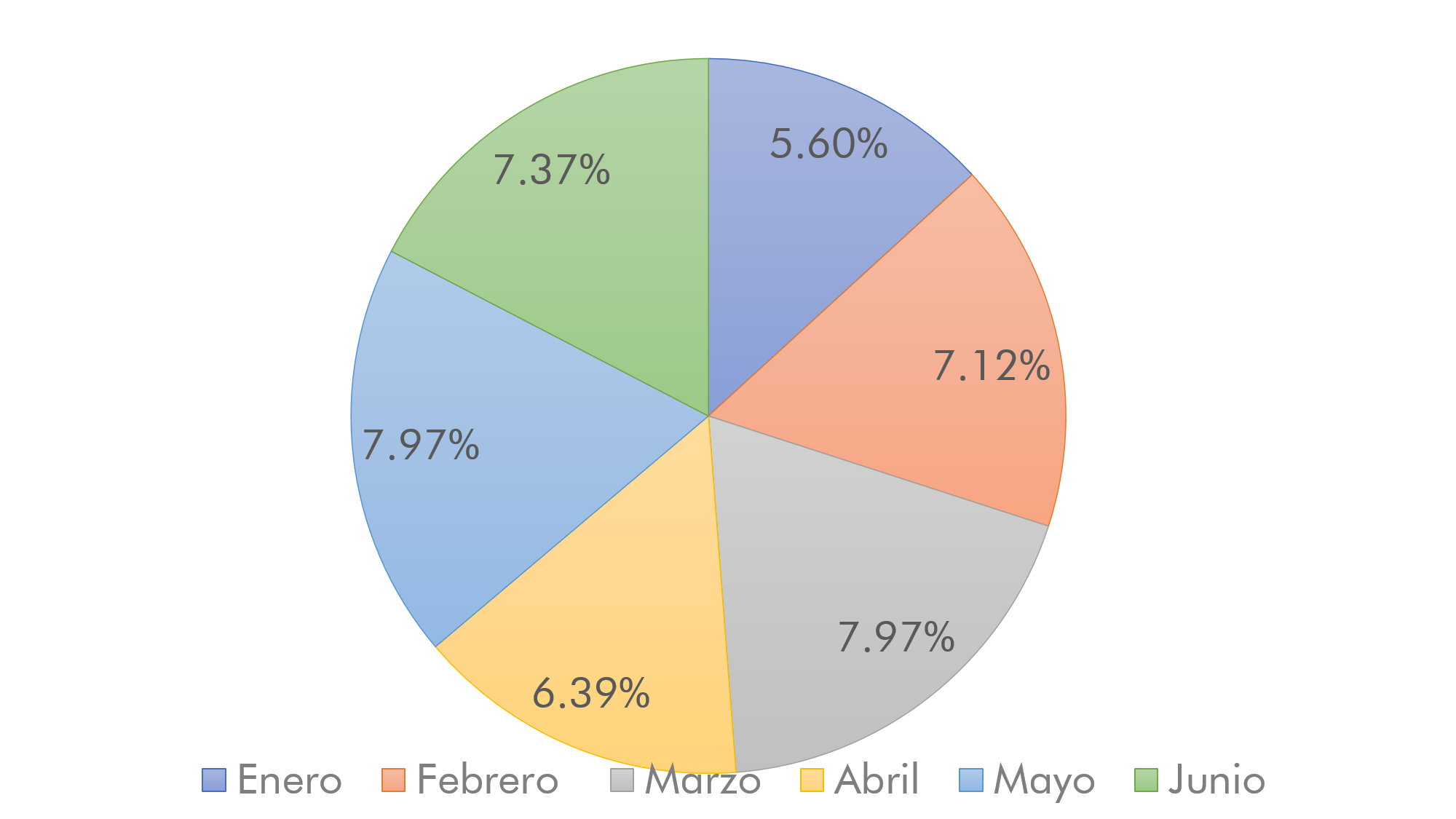 Al aplicar esta fórmula se pudo conocer el porcentaje exacto de las ventas al crédito que se realizaron por mes, las cuales se reflejan detalladamente en el siguiente gráfico.