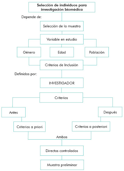 Para la selección de individuos para investigación biomédica se toman en cuenta los objetivos de la investigación que justifican la selección de la muestra y toma en consideración las variables en estudio, para esta investigación se utilizó el género, la edad y la población siendo estos criterios de inclusión definidos por el investigador.