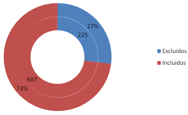 Después de realizar los pasos normados se concluye con la muestra seleccionada que reúne los requisitos de inclusión y exclusión, siendo del total de 832 individuos iniciales, quedando una muestra de referencia de población sana de 607 sujetos detallado en la figura 8.