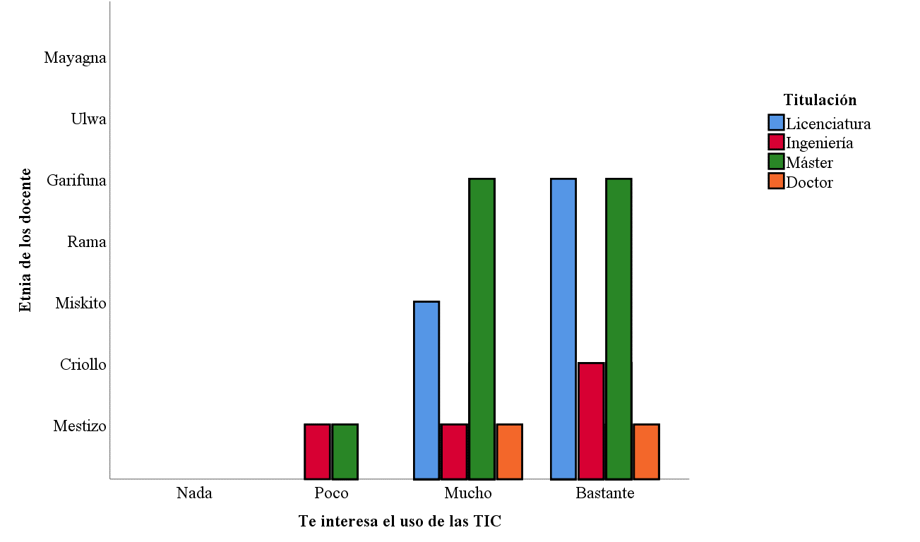 Figura 3. Interés en el uso de las TIC para la titulación de los docentes de BICU en función de su etnia y formación académica