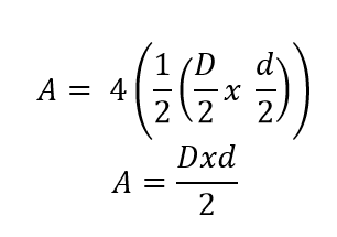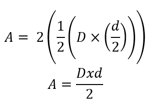De acuerdo a la fórmula del área de un triángulo, se tiene que la altura es d/2 y la base es D; luego el área de un triángulo es