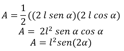 Donde l es el lado del rombo y α es la bisectriz (Barnet, 1991) de la diagonal menor.