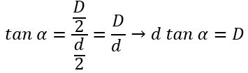 return (math.degrees(math.atan((D/2)/(d/2))))