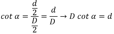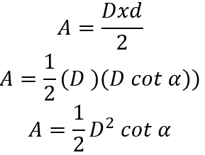 return (1/2*D**2*1/np.tan(math.radians(ang(D,d))))
